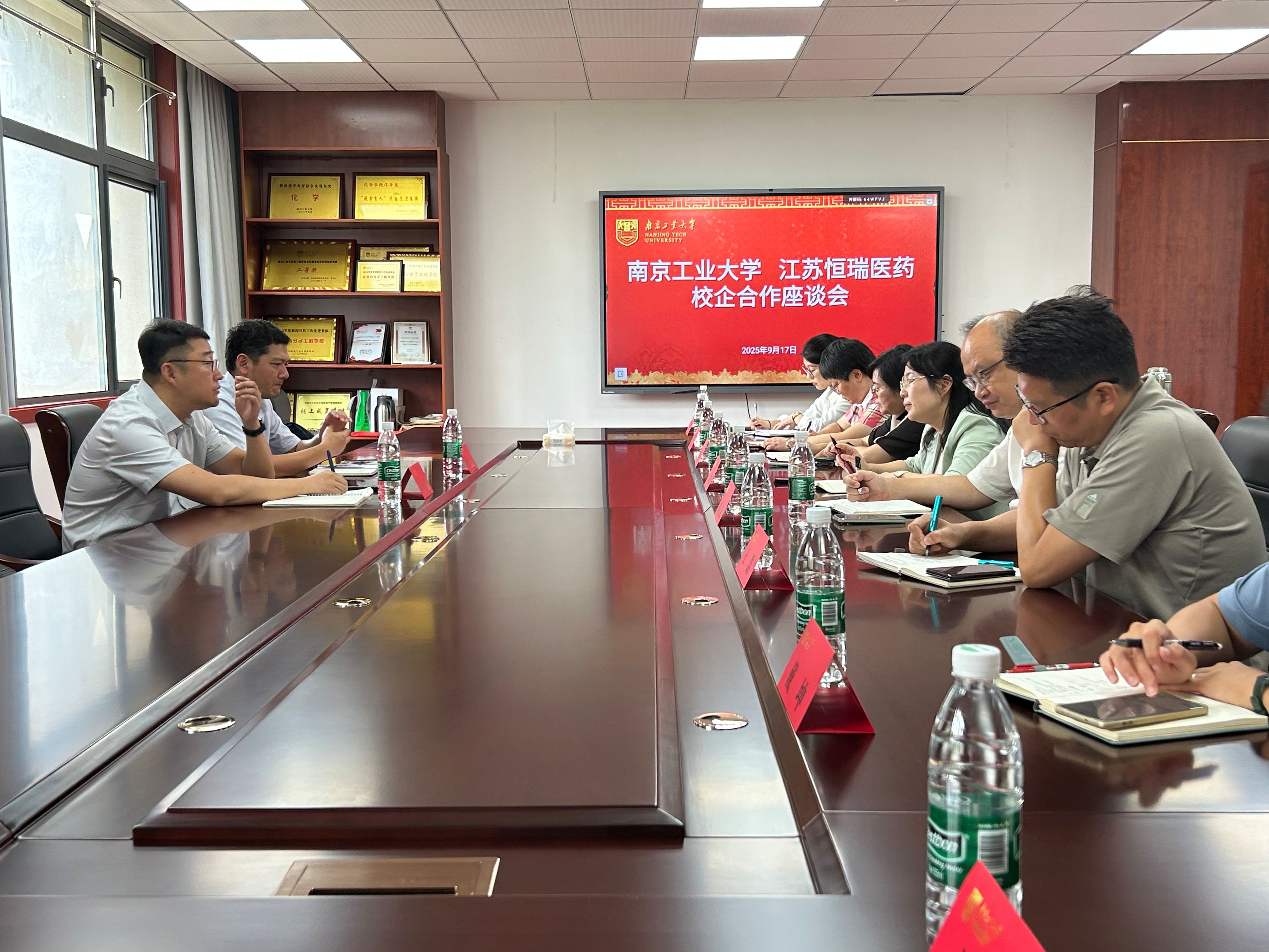 会上,王丽娟副书记对江苏恒瑞医药一行表示热烈欢迎,感谢江苏恒瑞医药对我校人才培养的关心与支持,希望通过签订大学生就业创业实习实践基地进一步加深交流与合作。祖楠经理对学院的热情接待表示感谢,他简要介绍了恒瑞医药公司基本情况和2026届招聘需求,期待通过共建大学生就业创业实习基地,能与学校加强交流,开展产学研合作。陈晓君副院长介绍了学院研究生培养工作,希望通过深化产教融合协同育人机制,在研究生培养方面开展深度合作。生物与制药工程学院、药学院、食品与轻工学院、机械与动力工程学院介绍了学院专业设置情况及2026届毕业生情况。