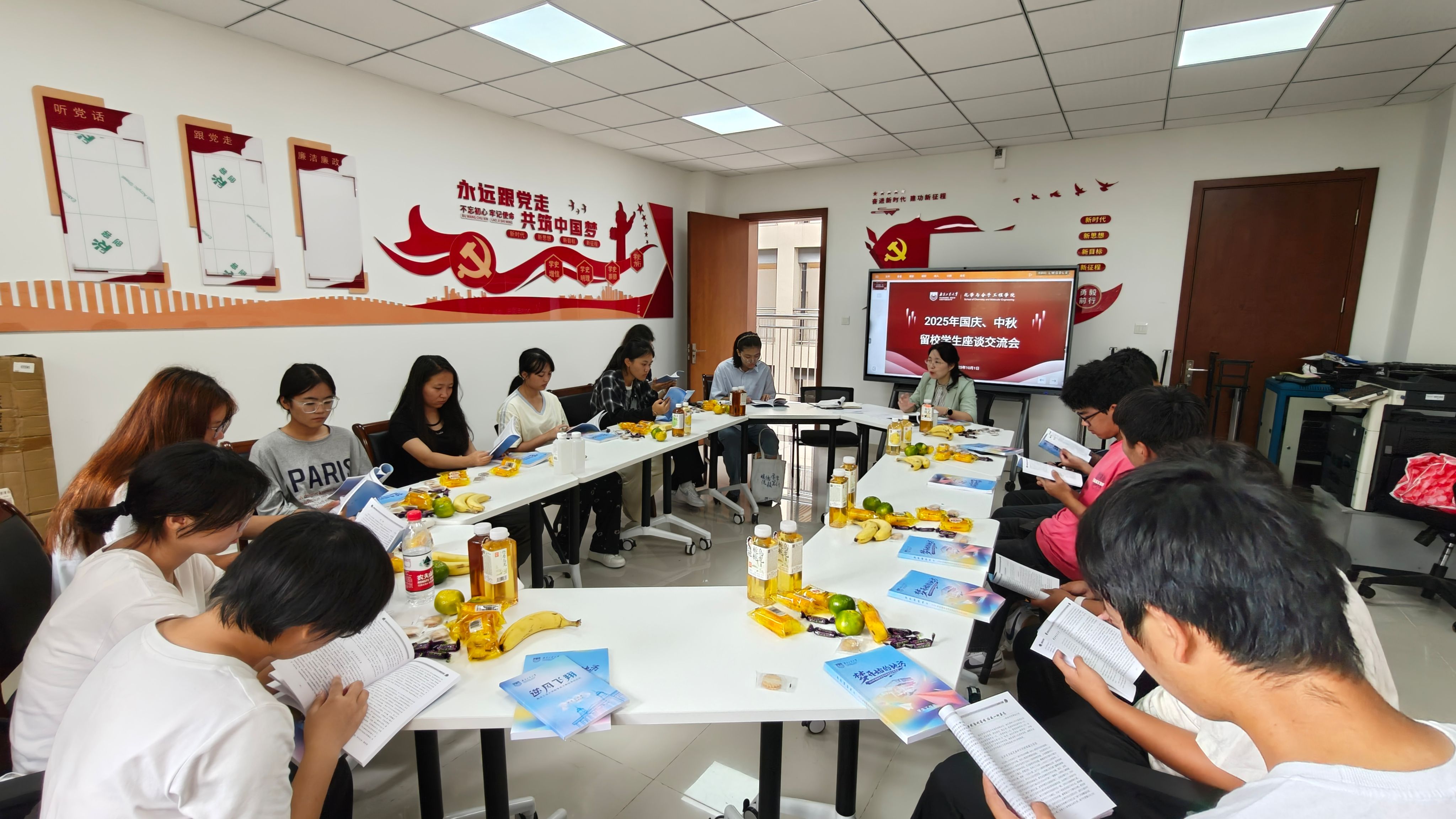 座谈会结束后,辅导员戴坤、班主任助理代表前往宿舍区,逐一走访慰问假期留校学生,为同学们送上象征团圆的月饼和学院的关怀祝福。
